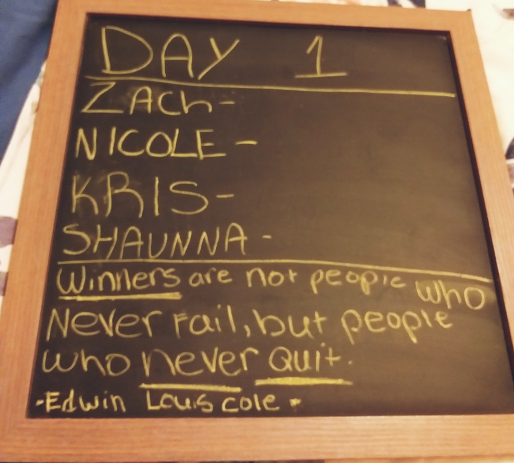 I started the day by getting the chalkboard ready with our weekly Quote and points put up.