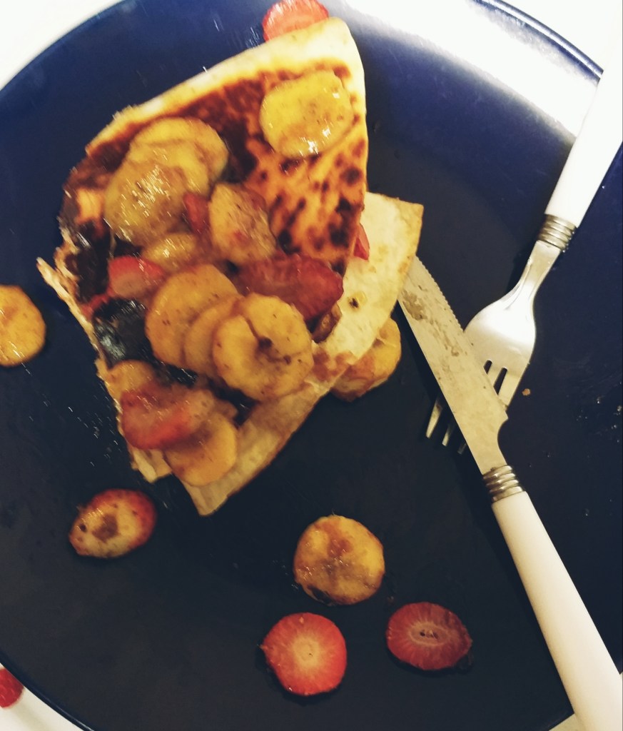 Myself, my husband and two room mates then had breakfast and went over the plan for our next 3 months, that day I made fruit and nutella wraps.